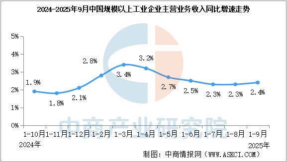 中商情報網(wǎng)訊:1-9月份,規(guī)模以上工業(yè)企業(yè)實現(xiàn)營業(yè)收入102.08萬億元,同比增長2.4%;發(fā)生營業(yè)成本87.34萬億元,增長2.6%;營業(yè)收入利潤率為5.26%,同比提高0.04個百分點。