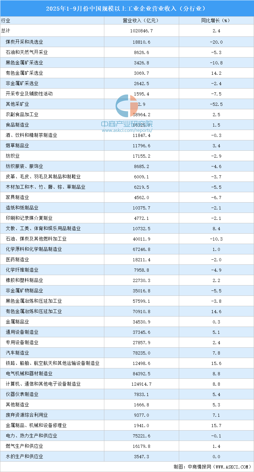 1-9月份,主要行業(yè)營業(yè)收入情況如下:農(nóng)副食品加工業(yè)利潤同比增長2.5%,電氣機械和器材制造業(yè)增長8.8%,有色金屬冶煉和壓延加工業(yè)增長14.6%。