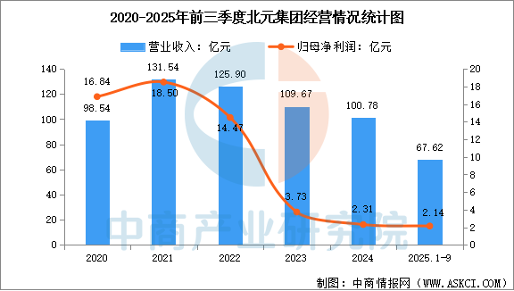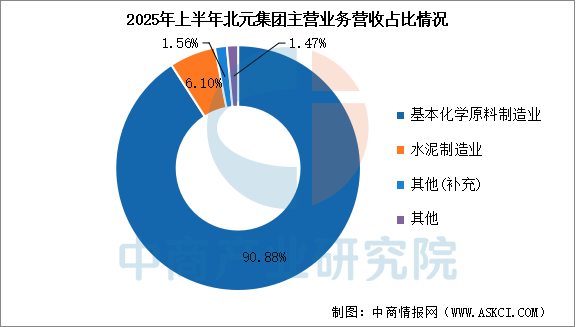 2025年前三季度,北元集團實現(xiàn)營業(yè)總收入67.62億元,同比下降9.91%,歸母凈利潤2.14億元,同比下降10.88%。上半年,公司基本化學原料制造業(yè)收入41.49億元,占比90.88%。