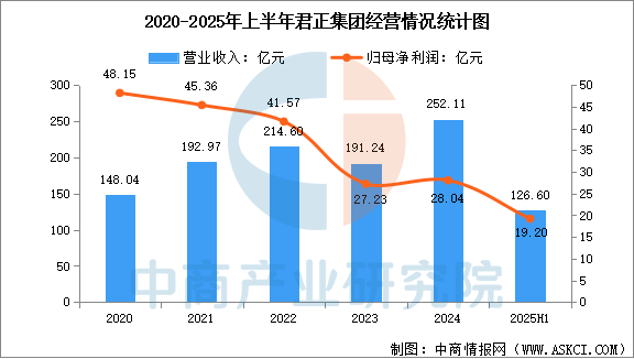 2025年上半年,君正集團(tuán)實現(xiàn)營業(yè)收入126.60億元,同比增長8.59%,歸母凈利潤19.20億元,同比增長26.82%。上半年,公司化學(xué)原料和化學(xué)制品收入89.38億元,占比70.60%。