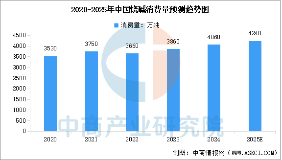 近年來(lái),新能源等行業(yè)為燒堿消費(fèi)帶來(lái)了新的增長(zhǎng)點(diǎn)。中商產(chǎn)業(yè)研究院發(fā)布的《2025-2030年中國(guó)氯堿工業(yè)深度研究及發(fā)展前景投資預(yù)測(cè)分析報(bào)告》顯示,2024年中國(guó)燒堿消費(fèi)量達(dá)到4060萬(wàn)噸,較上年增長(zhǎng)5.2%。中商產(chǎn)業(yè)研究院分析師預(yù)測(cè),2025年中國(guó)燒堿消費(fèi)量將達(dá)到4240萬(wàn)噸。