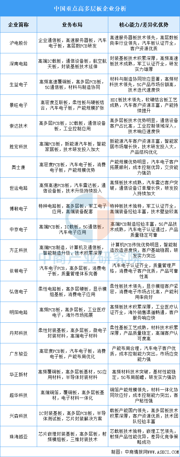 中商情報網(wǎng)訊:行業(yè)正經(jīng)歷從常規(guī)多層板向高密度、高性能方向快速升級,技術(shù)競爭聚焦高層數(shù)、細(xì)線路、高頻材料及高可靠性設(shè)計,應(yīng)用領(lǐng)域從通信設(shè)備向服務(wù)器、航空航天等高端場景加速拓展。滬電股份以高速服務(wù)器板技術(shù)主導(dǎo)市場;深南電路借封裝基板技術(shù)積累鞏固高端地位;生益電子依托材料與制造協(xié)同實現(xiàn)技術(shù)突破。