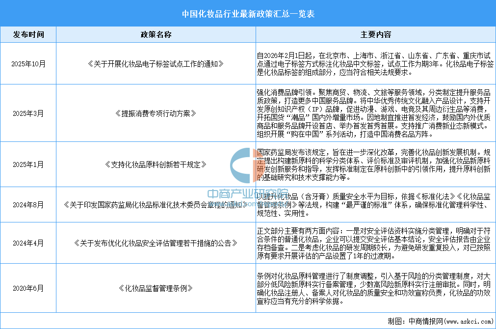 我國通過一系列政策從法規(guī)完善、創(chuàng)新支持、產(chǎn)業(yè)升級、安全監(jiān)管和綠色發(fā)展等多個維度推動化妝品行業(yè)發(fā)展,促進(jìn)國貨品牌崛起,提升行業(yè)整體水平和國際競爭力。