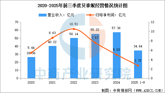 2025年前三季度,公司營業(yè)收入為34.64億元,同比下降13.78%,歸母凈利潤為2.72億元,同比下降34.45%。上半年,公司護(hù)膚品收入20.01億元,占比84.36%,彩妝收入2.387億元,占比10.07%。