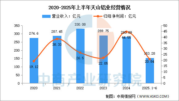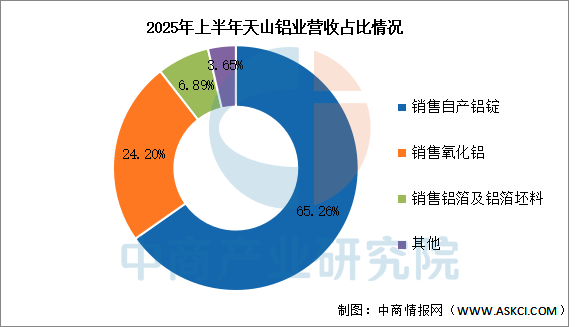 2025年上半年實(shí)現(xiàn)營業(yè)收入153.28億元,同比增長11.19%;實(shí)現(xiàn)歸母凈利潤20.84億元,同比增長0.48%。2025年上半年主營產(chǎn)品包括銷售自產(chǎn)鋁錠、銷售氧化鋁、銷售鋁箔及鋁箔坯料,營收分別占整體的65.26%、24.20%、6.89%。