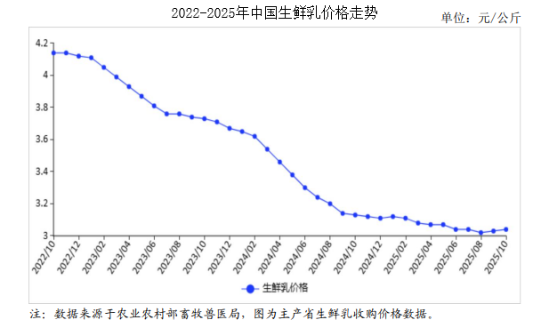 中商情報網(wǎng)訊:2025年10月,生鮮乳價格穩(wěn)中略漲。國內(nèi)市場:受氣溫降低、存欄量回調(diào)等影響,生鮮乳產(chǎn)量增速趨緩,疊加滅菌乳新國標(biāo)全面落地、育兒補貼政策等拉動國內(nèi)有效需求,預(yù)計后期生鮮乳收購價格企穩(wěn)回升。國際市場:南美與北美奶產(chǎn)量增長較快,全球牛奶供給充足,加之東南亞、中南美及歐洲進(jìn)口需求下降,預(yù)計后期國際乳制品價格維持跌勢。