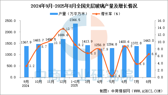 2025年8月全國夾層玻璃產(chǎn)量增長情況