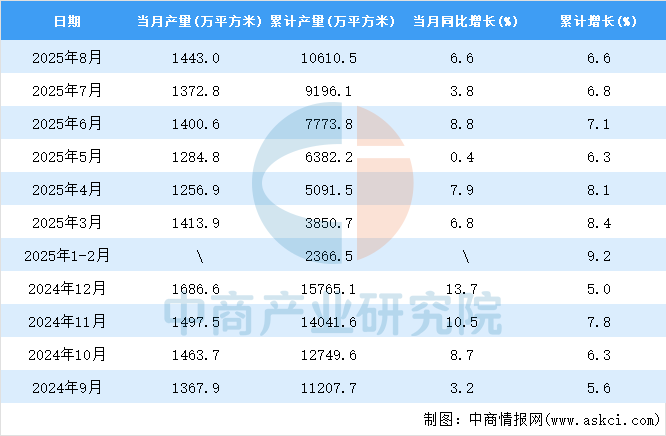中商情報網(wǎng)訊:據(jù)中商產(chǎn)業(yè)研究院數(shù)據(jù)庫,2025年8月全國夾層玻璃當(dāng)月產(chǎn)量與去年同期相比增長。2025年8月全國夾層玻璃產(chǎn)量為1443.0萬平方米,同比增長6.6%。2025年1-8月全國夾層玻璃產(chǎn)量10610.5萬平方米,同比增長6.6%。
