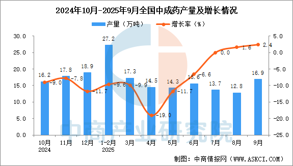 2025年9月全國(guó)中成藥產(chǎn)量增長(zhǎng)情況