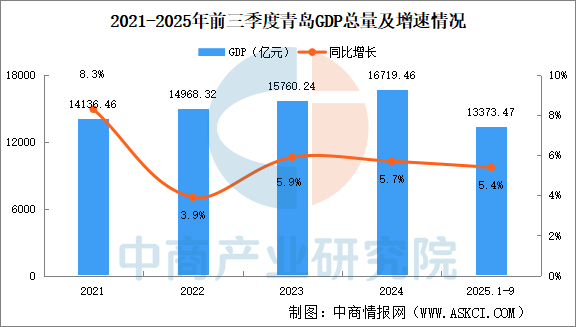 中商情報(bào)網(wǎng)訊:前三季度各項(xiàng)宏觀政策持續(xù)顯效,青島市經(jīng)濟(jì)頂住壓力、企穩(wěn)回升,呈現(xiàn)較強(qiáng)韌性和活力。根據(jù)地區(qū)生產(chǎn)總值統(tǒng)一核算結(jié)果,前三季度全市生產(chǎn)總值13373.47億元,按不變價(jià)格計(jì)算,同比增長(zhǎng)5.4%。分產(chǎn)業(yè)看,第一產(chǎn)業(yè)增加值371.91億元,同比增長(zhǎng)4.2%;第二產(chǎn)業(yè)增加值4401.21億元,增長(zhǎng)5.1%;第三產(chǎn)業(yè)增加值8600.35億元,增長(zhǎng)5.6%。