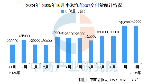 中商情報(bào)網(wǎng)訊:2025年10月,小米汽車交付量持續(xù)超過4萬臺,目前,小米汽車交付量連續(xù)2個月超4萬。