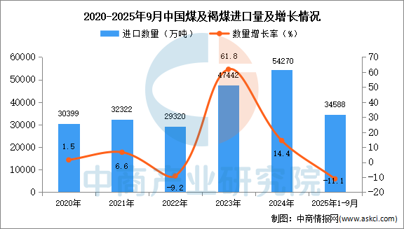 2025年1-9月中國煤及褐煤進口數據統(tǒng)計分析:進口量34588萬噸