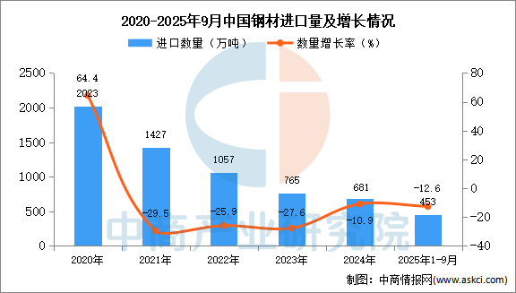 2025年1-9月中國鋼材進口數(shù)據(jù)統(tǒng)計分析:進口量453萬噸
